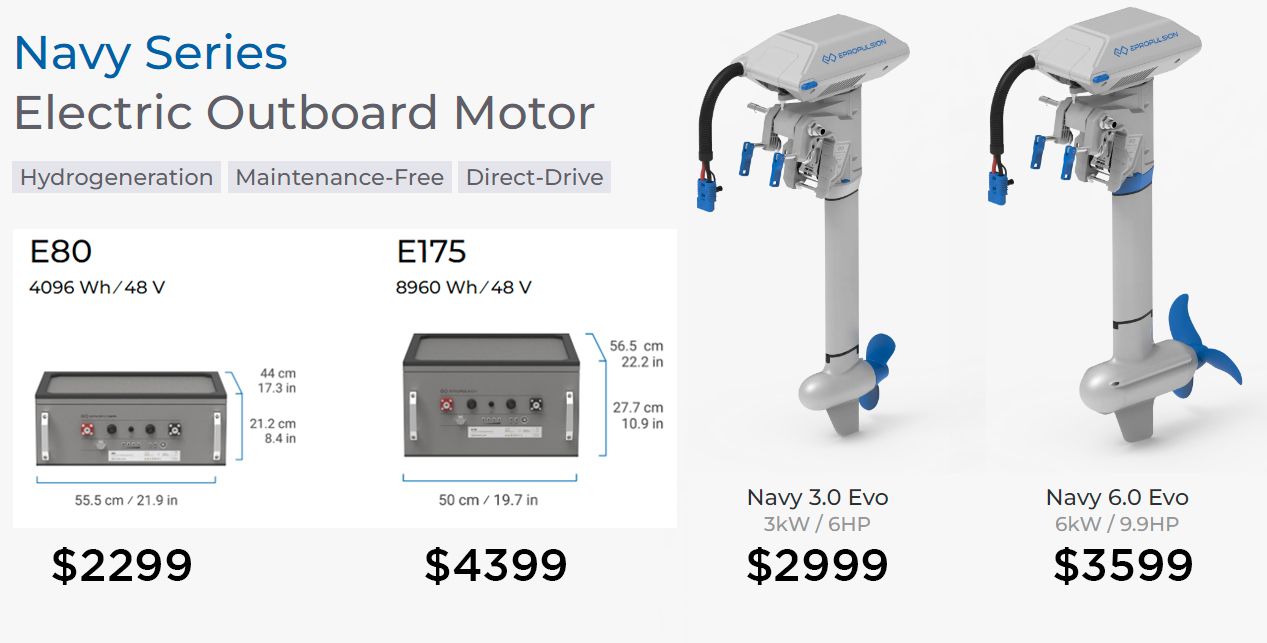 Navy 3.0 Motor Weight: 24.3 kg / 53.6 lbs Navy 6.0 Motor Weight: 36 kg / 79.4 lbs