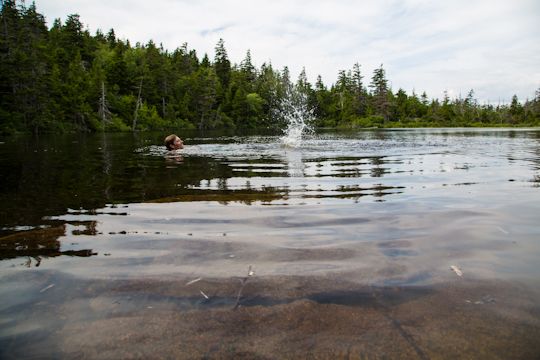 However, he did found his own private pond for a little afternoon dip! The perfect way to cool off after carrying all that gear.