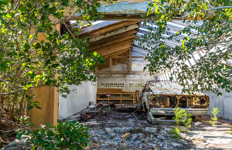 We didn’t film our quick jaunt around this town but we probably should have. It’s incredible how many of these islands in the Bahamas have similar rise and fall stories. The Berry Islands, specifically Great Harbour Cay are more of the same. Big investors dropped $38 million into a development (hotel and golf course) during the 1960’s expecting this island to be the next luxury hang out for the rich and famous. Some Hollywood celebrities did show up (Cary Grant, Brigitte Bardot, Jack Nicklaus…) but then what? There is a blip about what once was on the Great Harbour Cay Marina website but it doesn’t say what happened next. We went in search of the fancy hotel and designer golf course but all we found were these ruins.