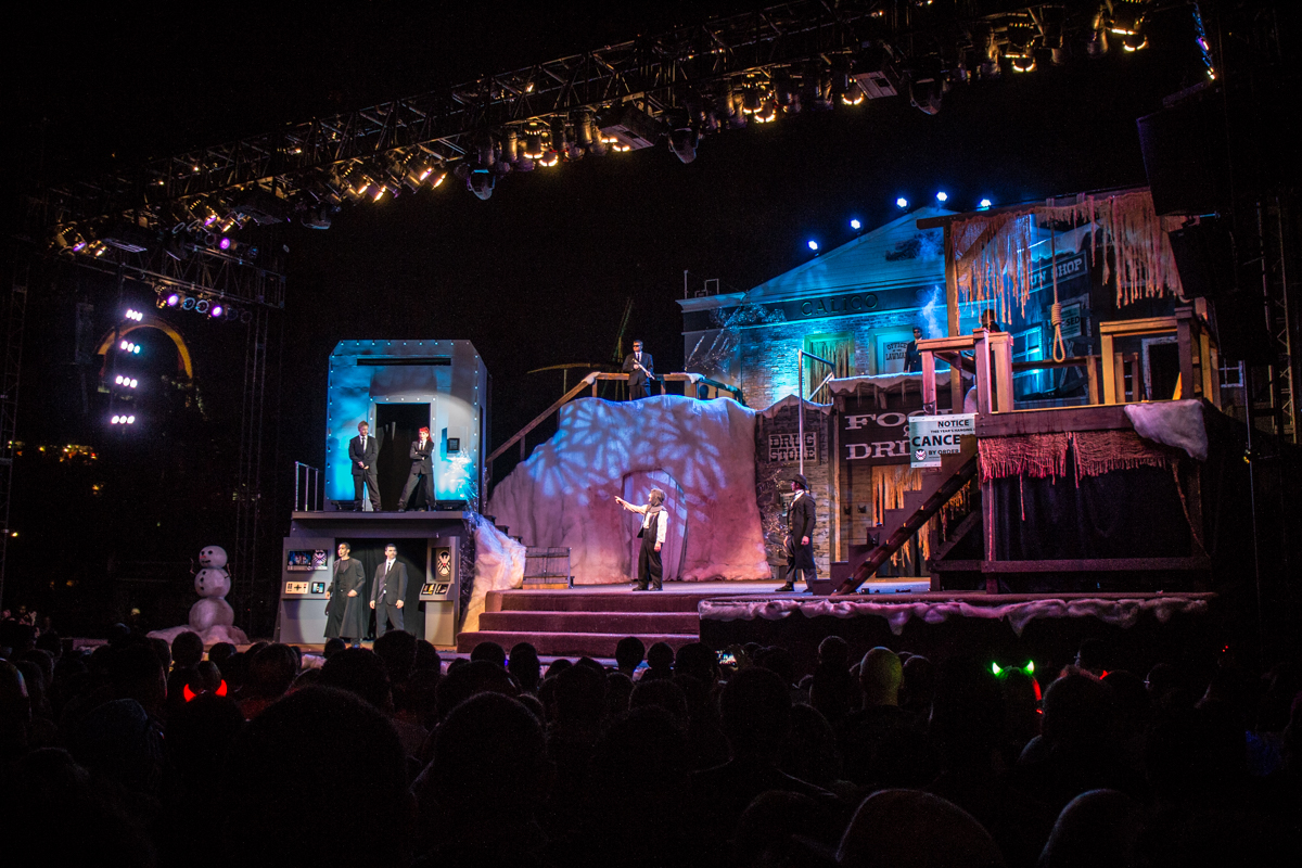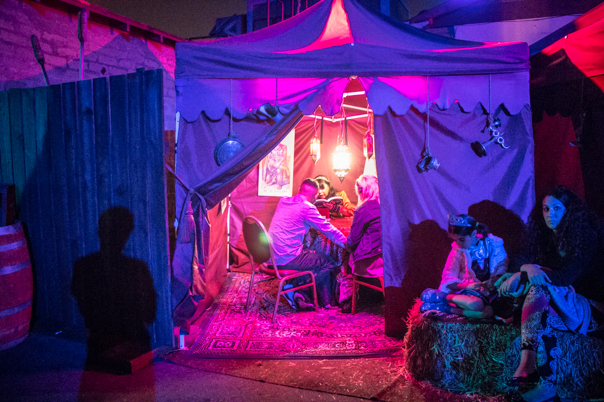 Traffic and parking was a mess but once we were in the park, the setting felt right. Lots of fog machines going, dark walkways and spooky decorations throughout the park. We found our way to a neat little pub setting, grabbed a beer and enjoyed the slap stick humor of the stage entertainment. It was a good start.