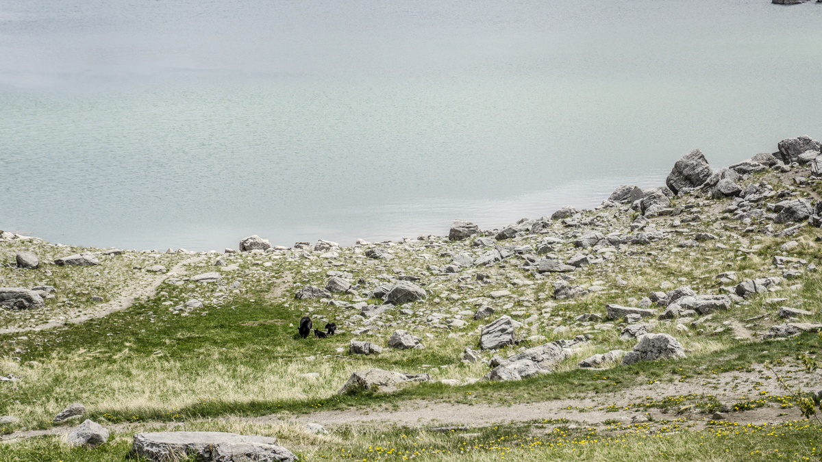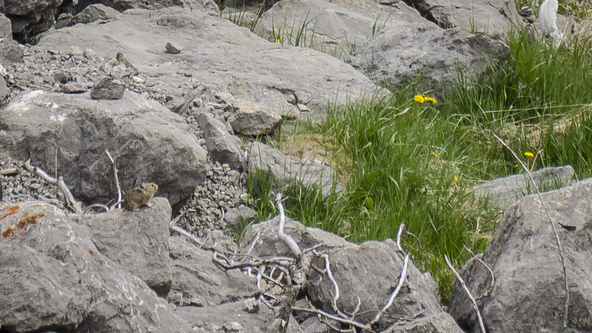 On the road to Maligne Lake keep your eyes peeled for wildlife! We noticed several clusters of cars pulled off the road in a few different places, with large groups of people with giant camera lenses running frantically to capture the local residents. As we passed one pull-out Nikki yells “Bears” and sure enough there was a momma and 2 babies hanging by the lake. We sat at a distance and watched them play for nearly an hour. We also spotted a pica and a moose in the area.