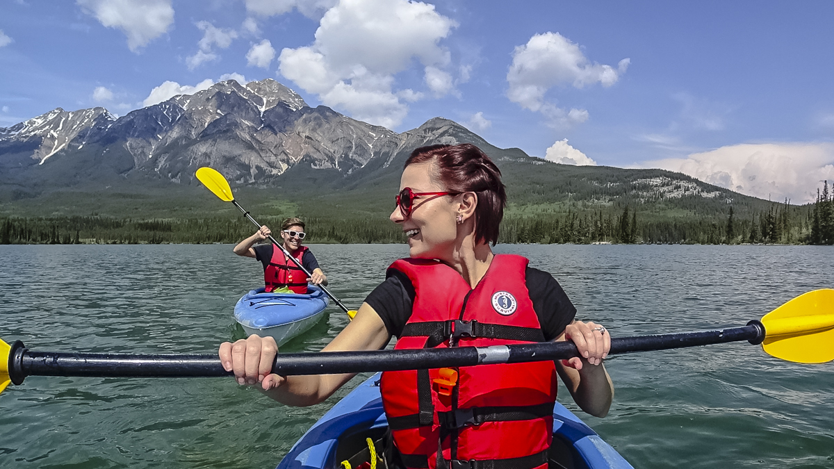 Kayak Pyramid Lake – Originally we wanted to paddle Maligne Lake, however since we’re early in the season that wasn’t an option, so we headed to Pyramid Lake instead. With our schedule for the day being totally full we decided rent for a quick paddle instead of lugging around our paddle board. I can’t think of a better way to start a day of exploration than on a beautiful, crystal clear lake surrounded by mountains. The resort had public WiFi which was a post paddle bouns!