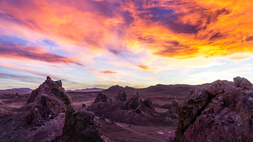 We were in Bakersfield, CA visiting family and we had a couple weeks to kill before our next obligation. The Sierra’s were covered in snow so visiting Sequoia National Park (or the National Forest) wasn’t an option. We considered heading southwest through Ojai and ending on the beach in Ventura, but our next life will be all beach towns and ocean views. Then I saw a little dot a couple of hours east called Trona Pinnacles.