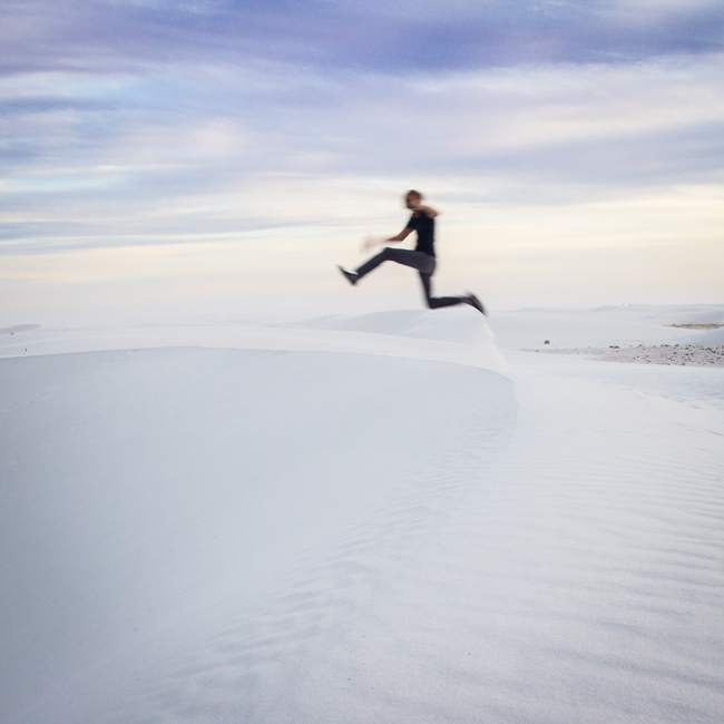 Not to say those beautiful thoughts and words didn’t come later. Now, as we look back at our photographs it’s hard to believe we were there…or that such a place even exists. White Sands is one of those incredible places where you can physically see how time and wind work together to shape the world. Each wisp and gust of wind wipes away footprints, molds the ground around you and changes the distance landscape.