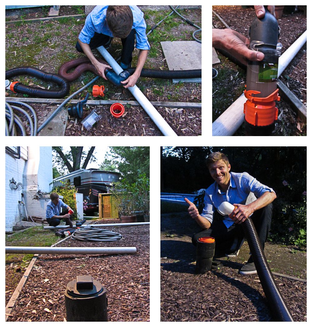 Cathy heads in to prepare dinner (yep, she’s gonna make us dinner; I love this driveway surfing action) and I get to setting up “camp”. Everything is perfect, free water, 120 outlet, and she even has a connection that goes directly to the sewer. One problem, my hose is 30 feet and the sewer is nearly 50 feet away. Being the prepared ‘boy scout’ I remember the RV came with a sewer hose which I kept just in case. A little rigging and before you know it we’re dumping the grey water. I thought about dumping the black tank, but I didn’t trust my sewer hose rigging (never said I was a good boy scout). All is set for tonight, now we’re heading in for dinner, drinks, and conversation.